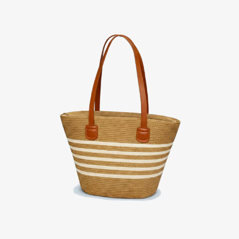 A stylish casual tote bag made with a woven straw-look material and sturdy leather-finish handles. Lightweight, spacious, and perfect for everyday use, shopping, or casual outings.